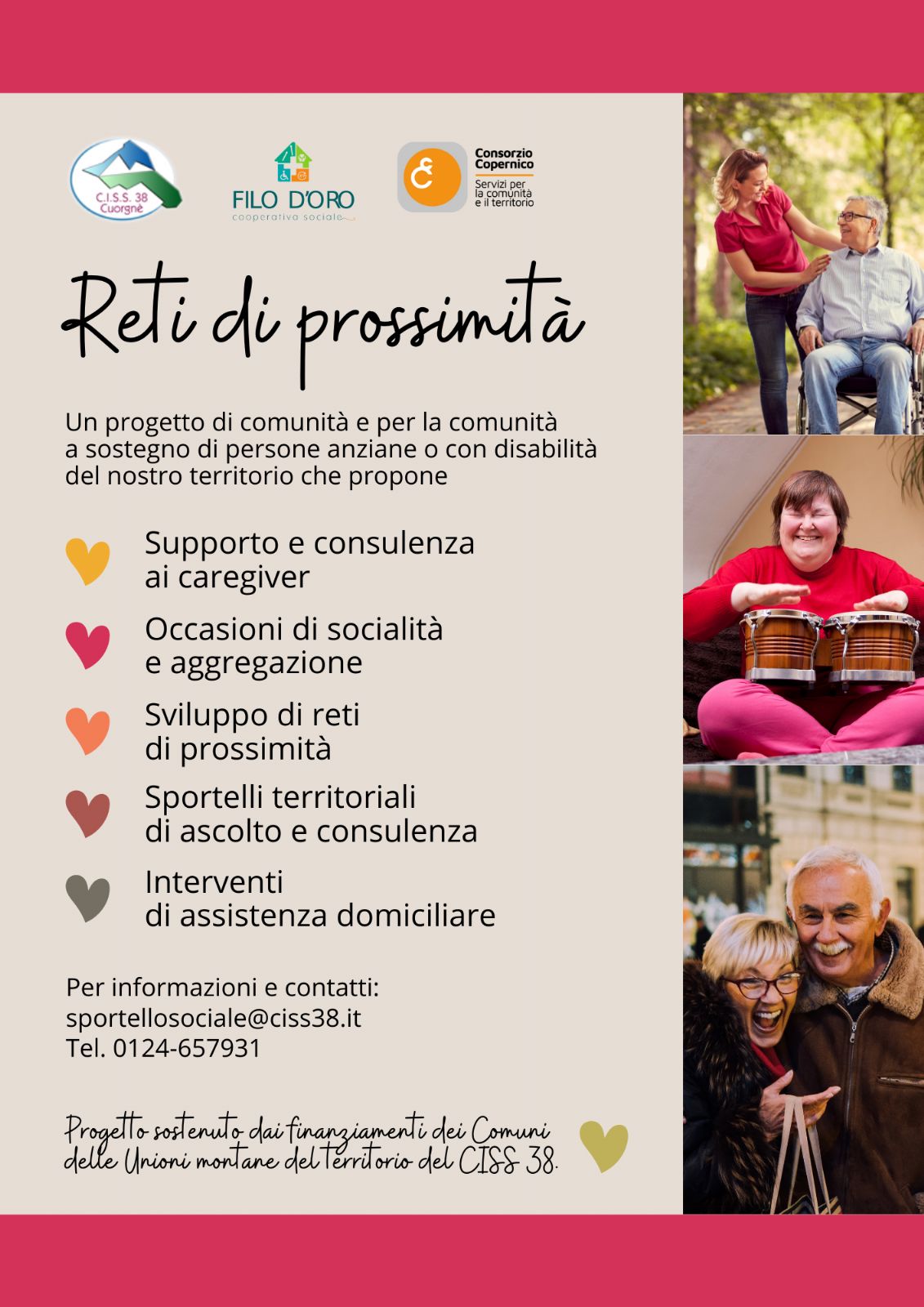 Un progetto di comunità e per la comunità a sostegno di persone anziane o con disabilità del nostro territorio, finanziato con le risorse del Fondo di Solidarietà Comunale dei Comuni delle Unioni Montane del Territorio del CISS 38, in collaborazione con la Cooperativa Sociale Filo D'Oro e il Consorzio Copernico.