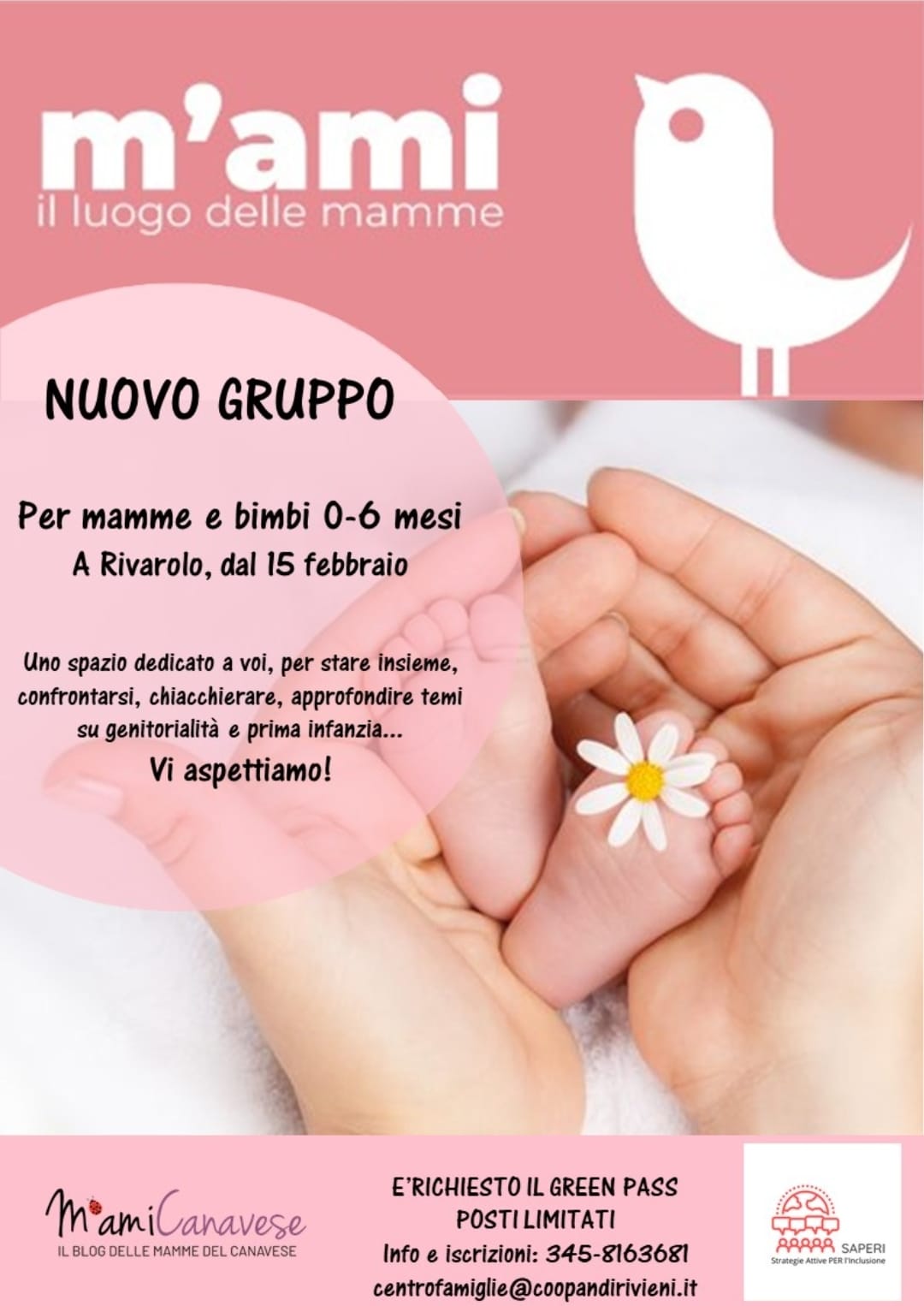 Dal 15 febbraio si avvierà un nuovo gruppo M'AMI per mamme e bimbi 0-6 mesi, presso il Centro Famiglie di Rivarolo Canavese, in Corso Meaglia 9.