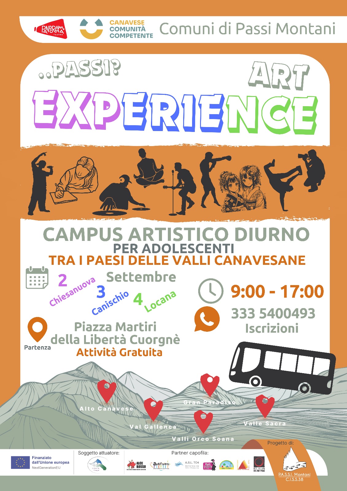 Campus artistico diurno dal 2 al 4 settembre 2024, dalle ore 9 alle 17, tra i paesi delle valli canavesane.