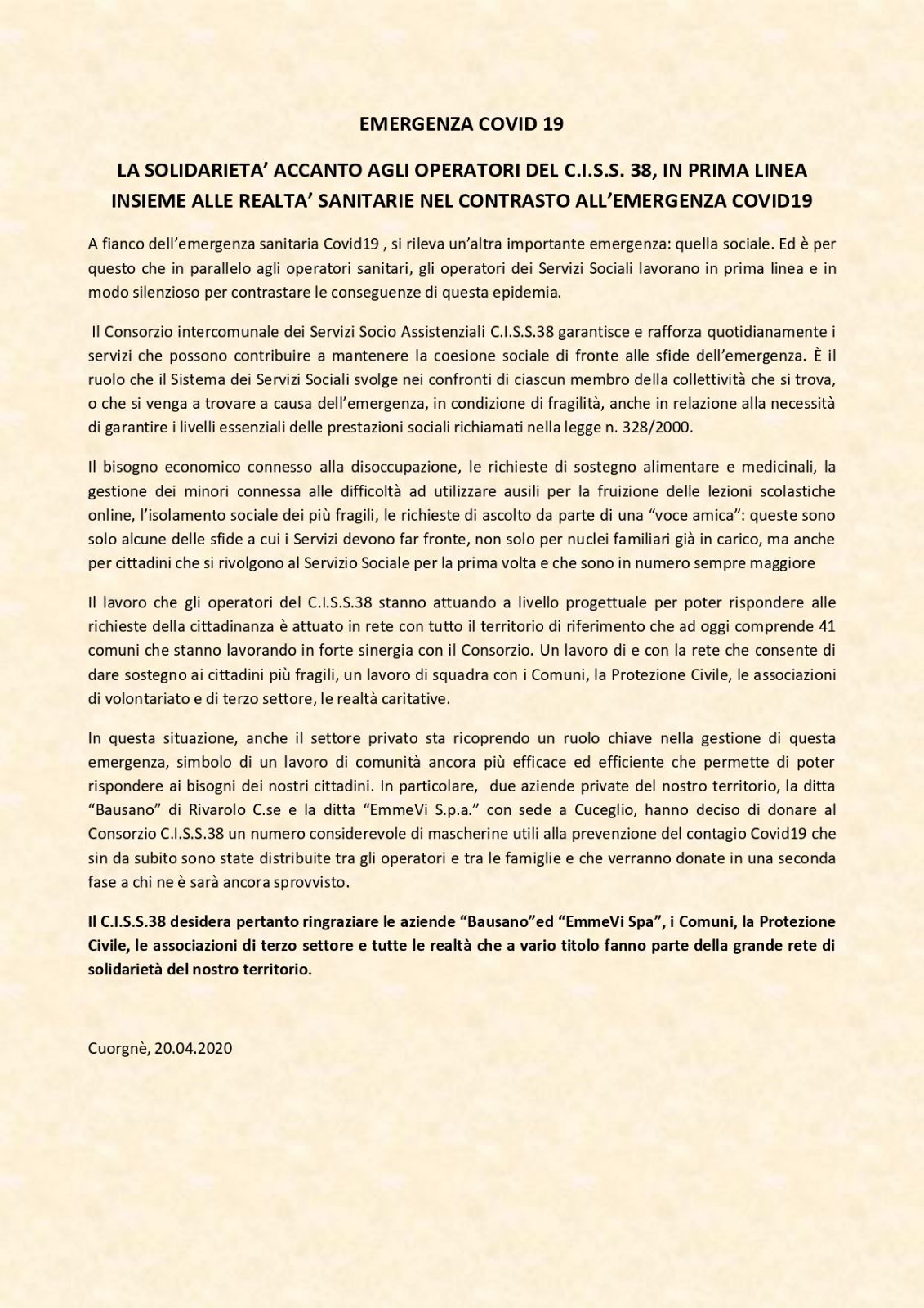 La lettera del CISS38 per ringraziare la rete di solidarietà del territorio.