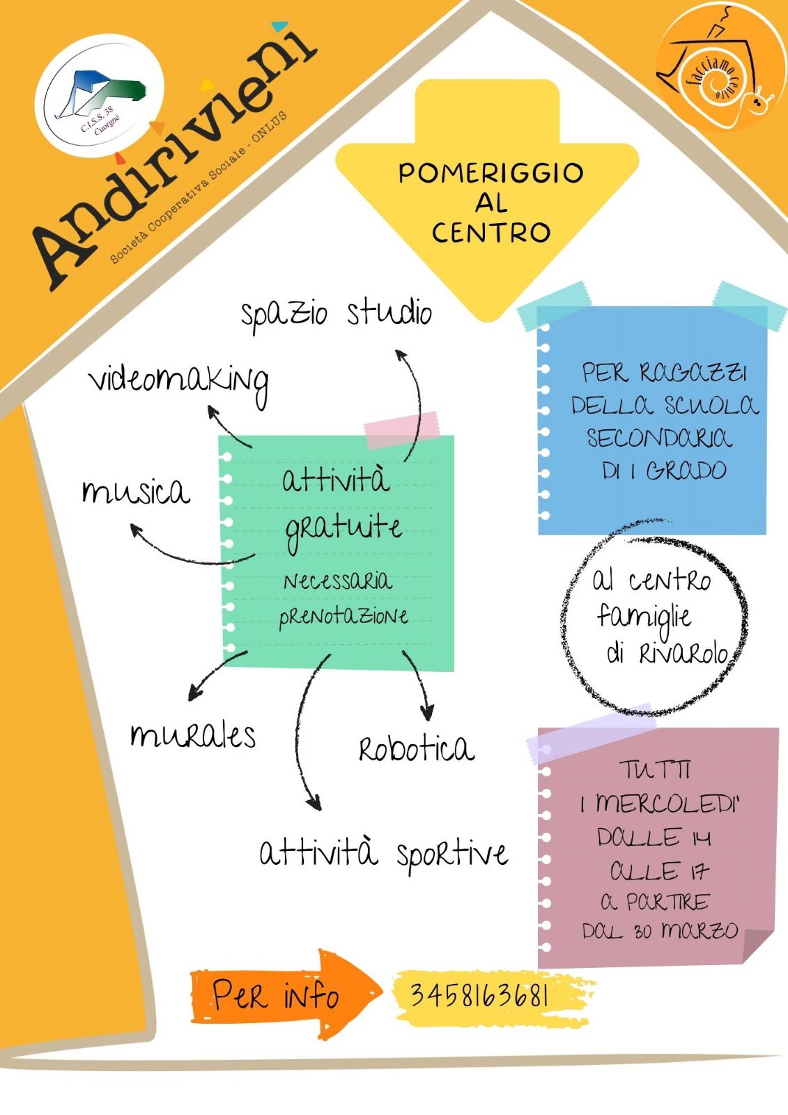 "POMERIGGIO AL CENTRO" è una nuova iniziativa del Centro per le Famiglie di Rivarolo Canavese, rivolta ai ragazzi della scuola secondaria di I grado.