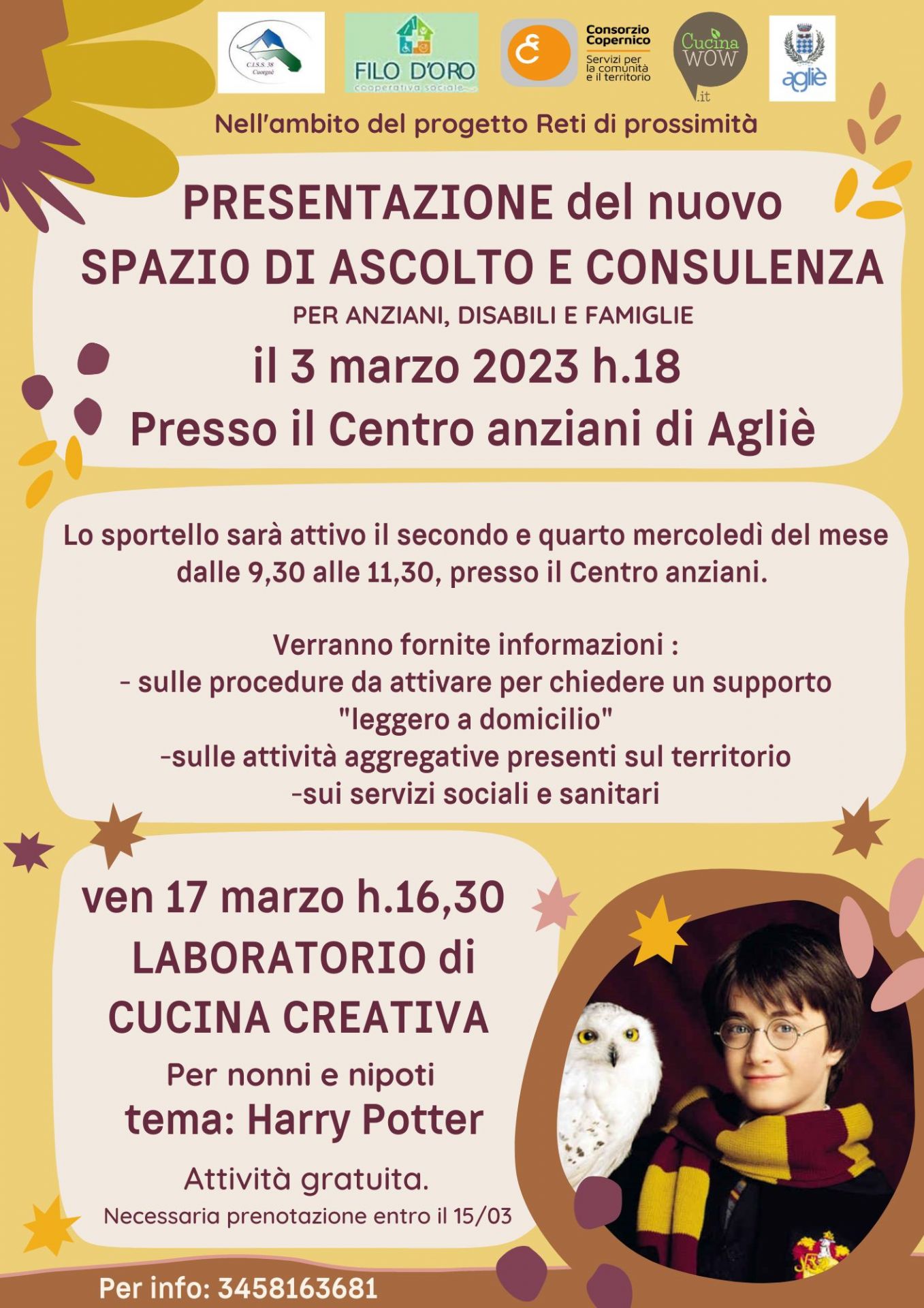 A seguire, il 17 marzo alle 16.30 è in programma un laboratorio di cucina creativa per nonni e loro nipoti, a tema Harry Potter.