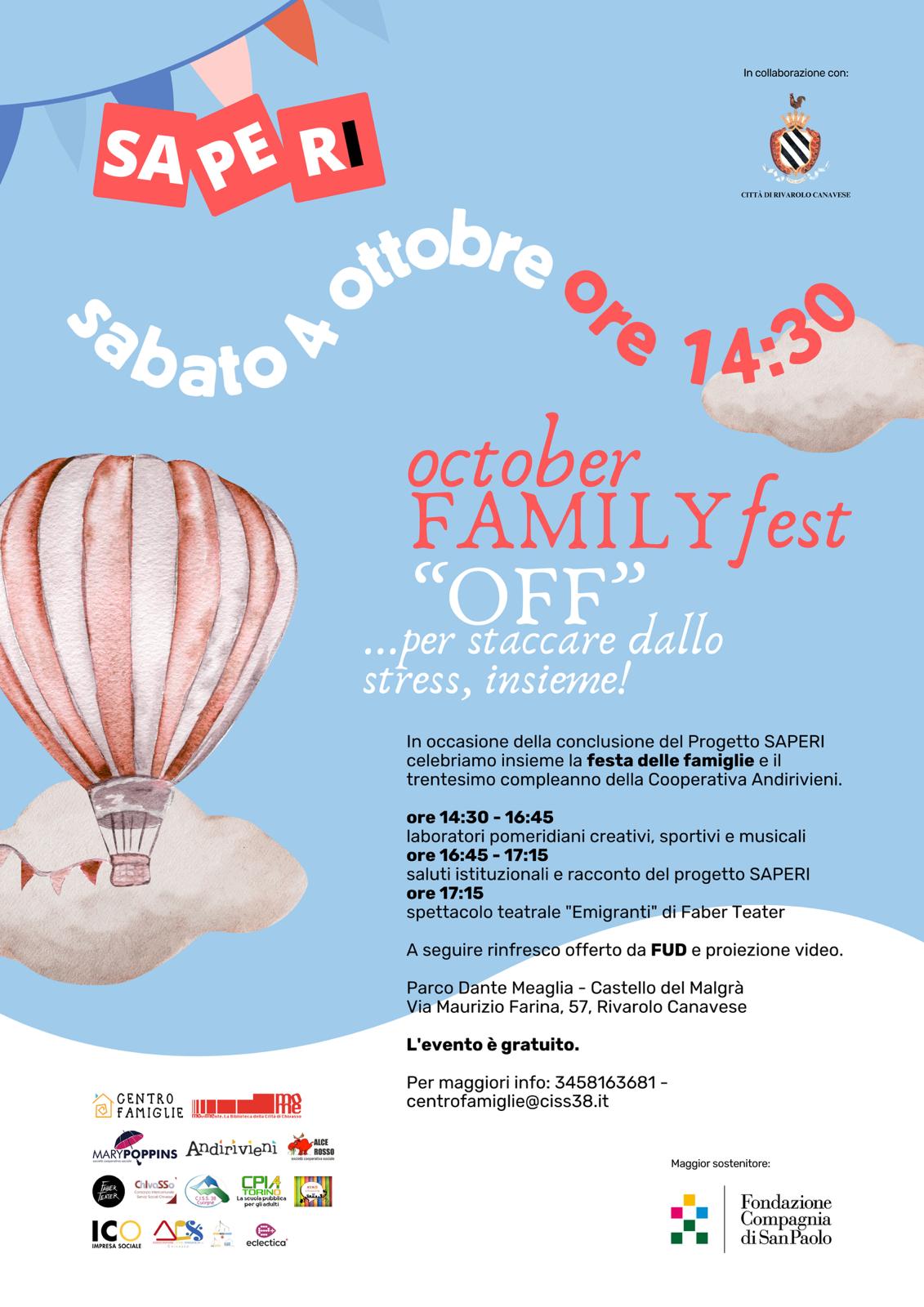 📢 Sabato 4 ottobre, a partire dalle ore 14:30 vi aspettiamo in tante e tanti al Parco Dante Meaglia - Castello del Malgrà (Via Maurizio Farina, 57) di Rivarolo per l’October FAMILY fest!