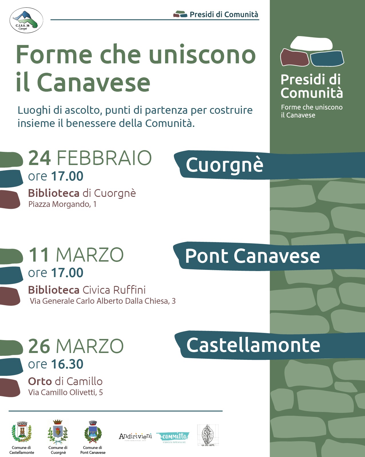 Il Consorzio C.I.S.S. 38 è lieto di annunciare l’inaugurazione dei Presìdi di Comunità – “Forme che uniscono il Canavese”, spazi di aggregazione e confronto pensati per promuovere il benessere collettivo e favorire la partecipazione attiva della cittadinanza.